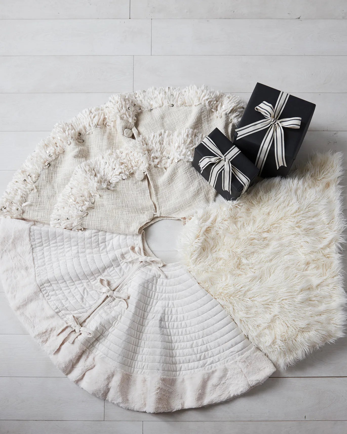 Add understated elegance to your Christmas tree with a plush tree skirt. Featuring a channel stitch quilting pattern and concentric circular design, this accent brings a simple yet sophisticated look to your decorating.